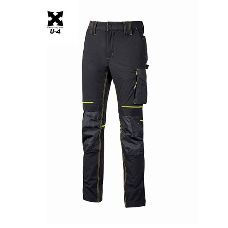 Pantalón en tejido U-4 (U-Power 4 vías stretch), muy cómodo y resistente, suave para la piel, repelente al agua, muy transpirable y secado muy rápido. Equipado con dos grandes bolsillos delanteros, cintura elástica con un innovador sistema de ajuste retráctil. Rejilla trasera acentuada para una mayor protección de la parte lumbar, perfiles en reflectante delanteros y traseros y cinta roja / reflectante en el cinturón tubular trasero. Bolsillo lateral para herramientas, bolsillo lateral multifuncional con porta tarjeta ocultable, dos bolsillos traseros, uno con solapa y otro con cierre de seguridad con velcro, dos bolsillos con entrada porta rodilleras, todo en un resistente Polyoxford 600D. Dos bolsillos cerrados con cremallera corespondientes al bolsillo lateral y al bolsillo delantero derecho. Costuras triples. Cierre central con cremallera YKK y botón antiarañazos, Slim Fit.