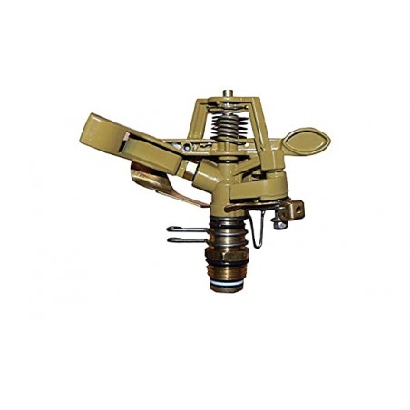 Un aspersor ideal para áreas grandes. Muy sencillo ajuste de la zona de riego. Alcance máximo de 11 metros con una presión del agua de 5 kilos. Rosca de 1/2”. Lleva brazo antisalpicaduras. Fabricado en zamak.