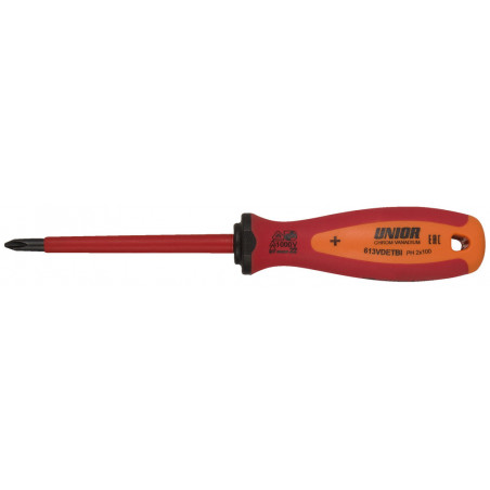 Tiene una hoja de acero al cromo vanadio de alta calidad, totalmente endurecido y templado, con punta pavonada, mango ergonómico, con material tricomponente, agujero para colgar. Con gran resistencia hasta cerca de circuitos eléctricos, que proporciona protección hasta los 1.000 voltios. Con resistencia al impacto, electricidad, pirorresistencia, adhesión del aislamiento y pruebas de sello, para que puedas trabajar en instalaciones de energía eléctrica y están diseñadas para su uso sencillo y seguro