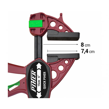 Quick Piher Manejo con una sola mano y con una fuerza de 150 kg con 45 cm de abertura